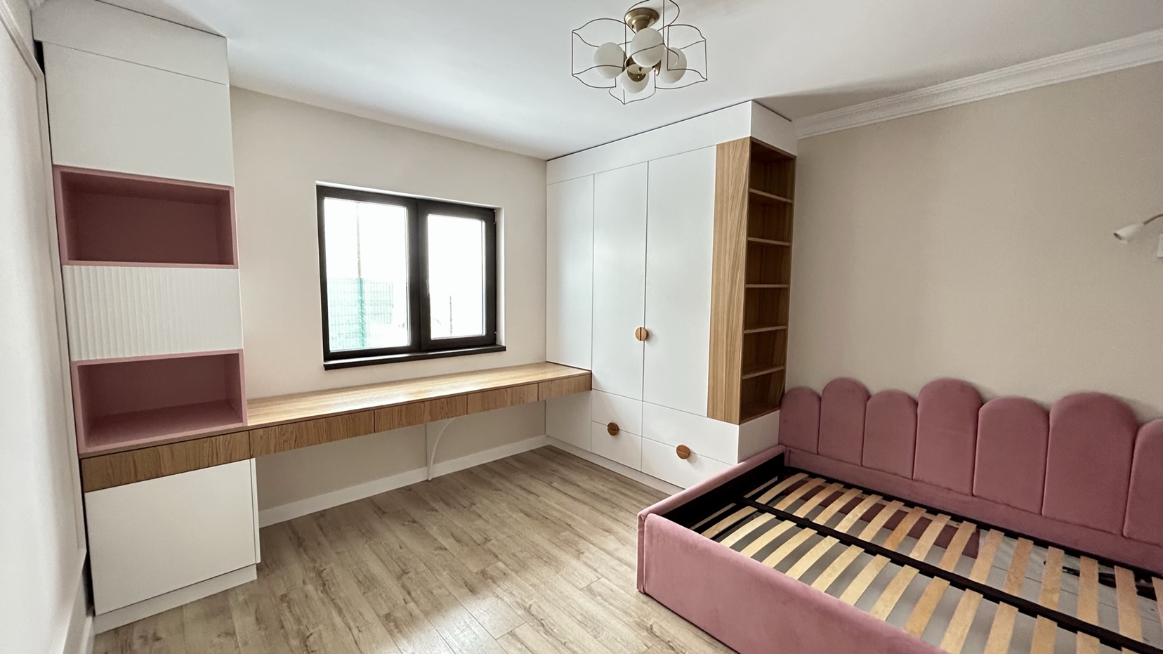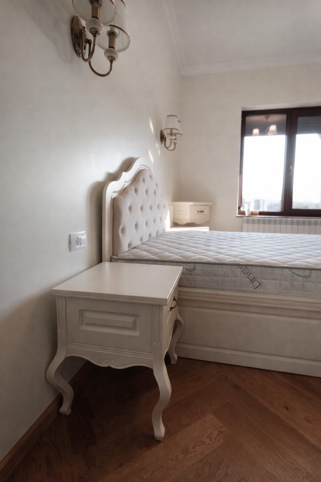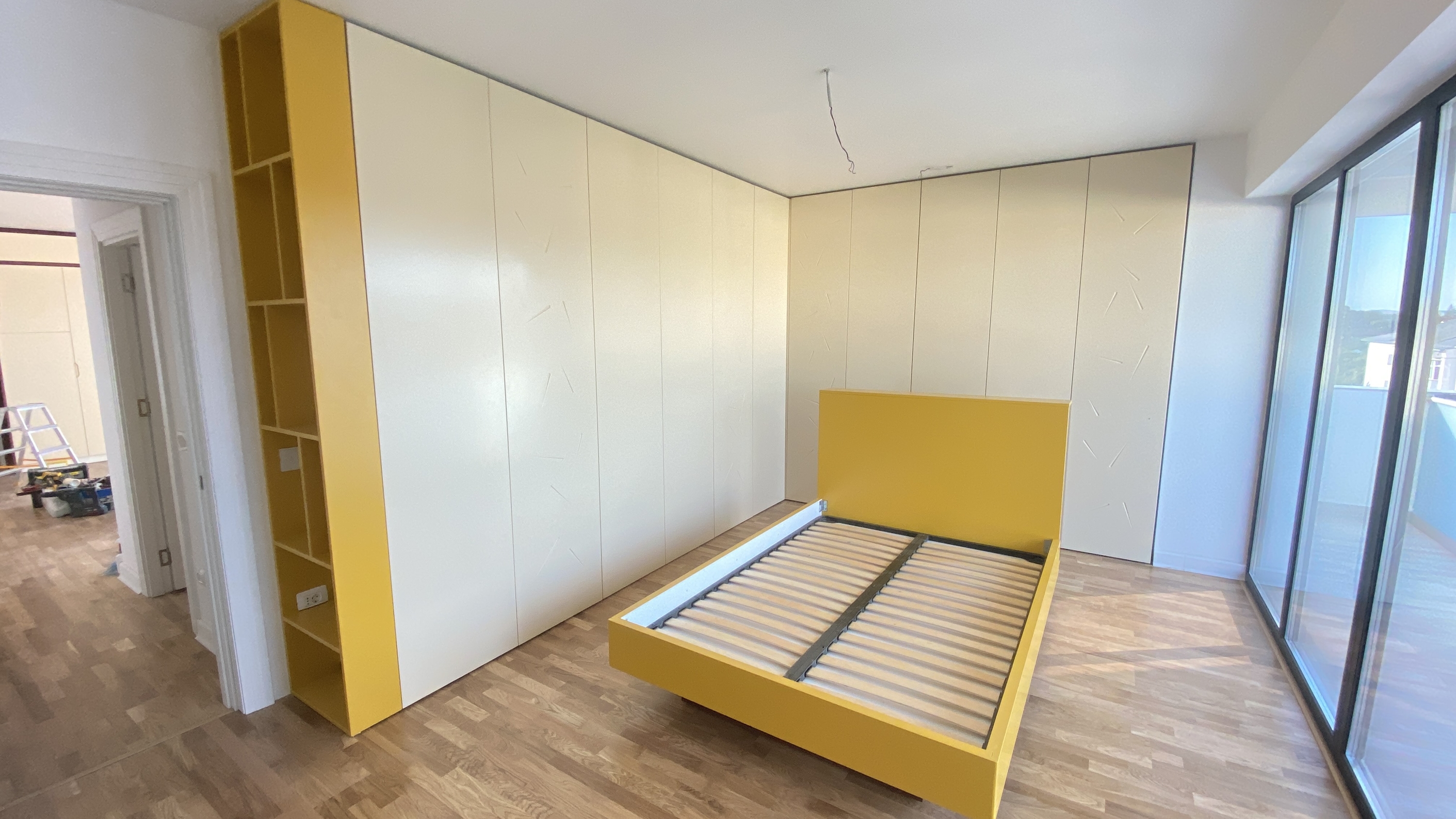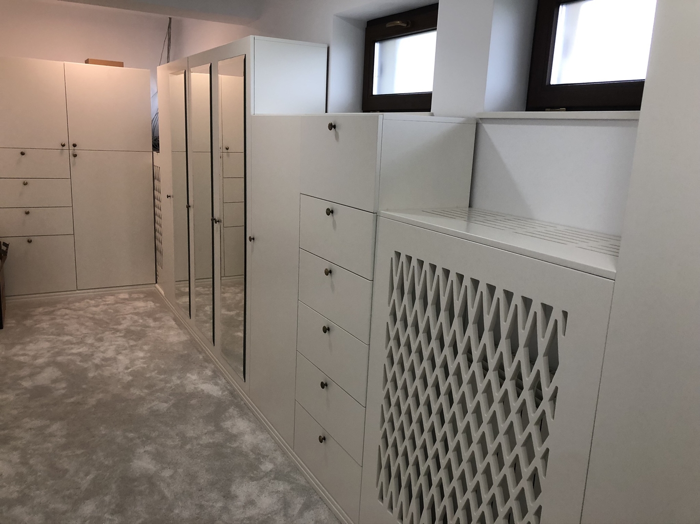 Caracterizat prin linii drepte și elemente decorative într-o simetrie ordonată, dormitorul devine locul preferat atunci când dormim sau ne încărcăm bateriile. Patul, cu eleganța sa, devine piesa centrală a dormitorului, invitând la relaxare și un somn liniștit. În același timp, poziționarea strategică a dressingului, care se abate de la tiparul tradițional, completează organizarea eficientă a spațiului de depozitare.
