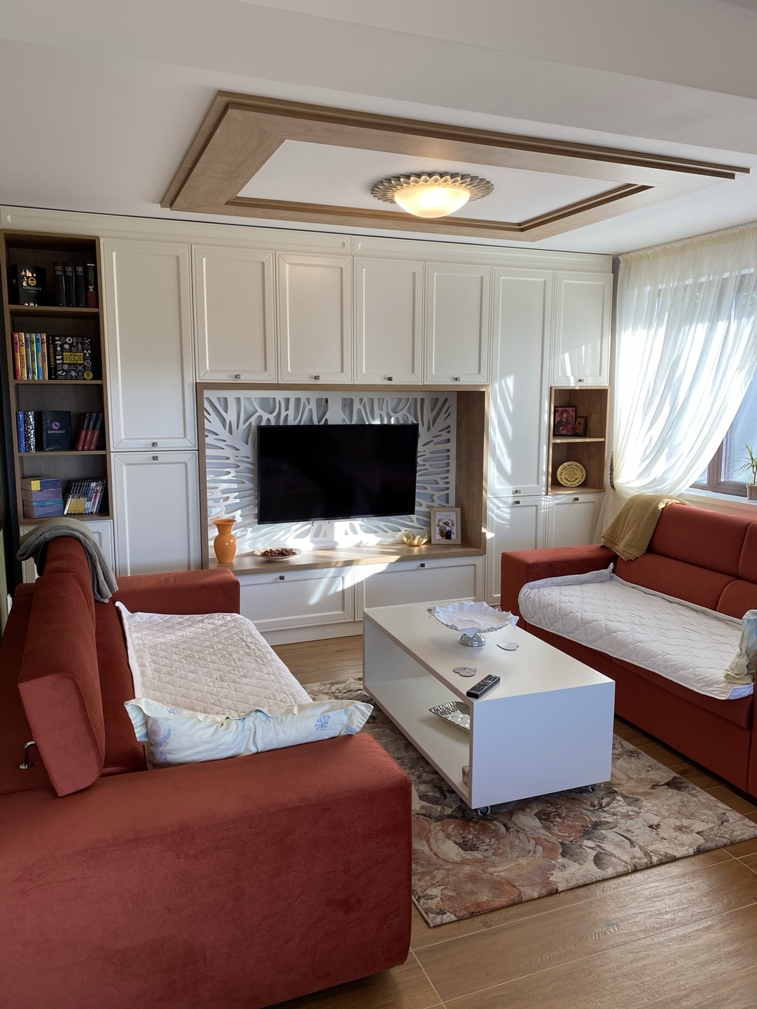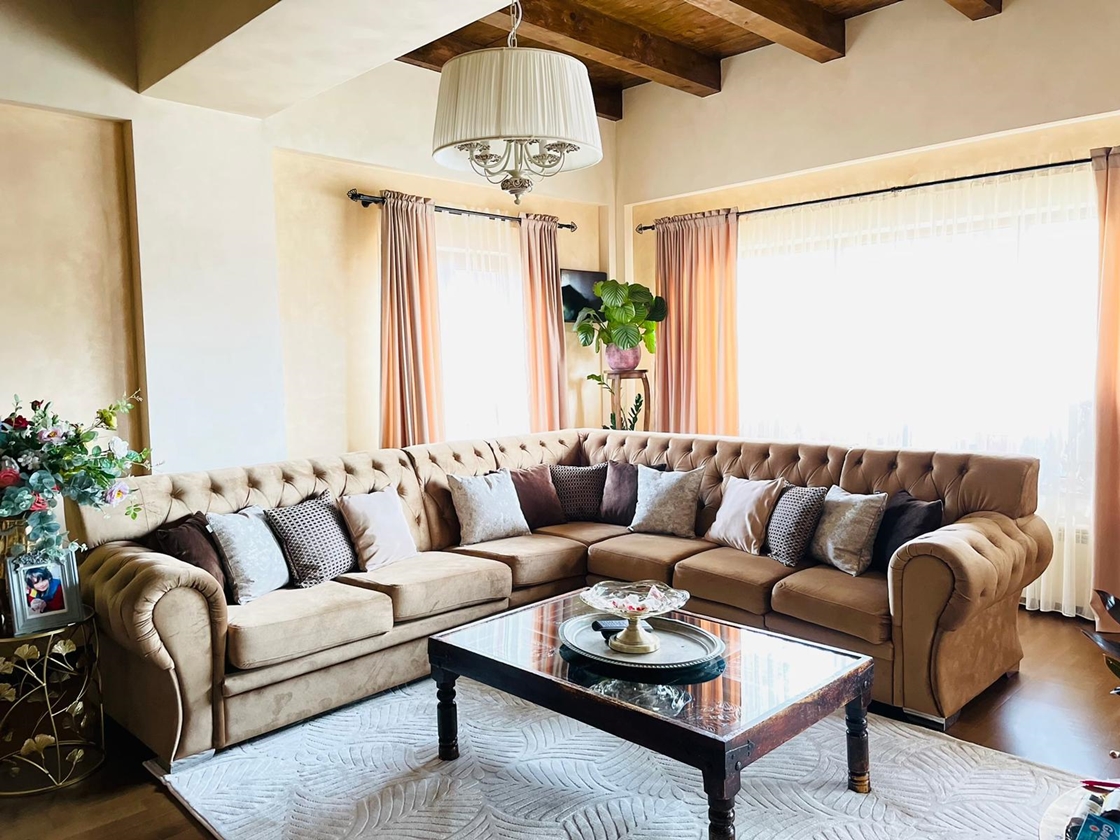 Livingul reprezintă cartea de vizită a fiecărei locuințe, fiind spațiul unde desfășurăm majoritatea activităților împreună cu persoanele dragi. Detaliile selectate cu grijă conferă spațiului o fluiditate și un rafinament aparte, iar paleta de culori delicate, exprimate în nuanțe vibrante, completează cu îndrăzneală decorul.